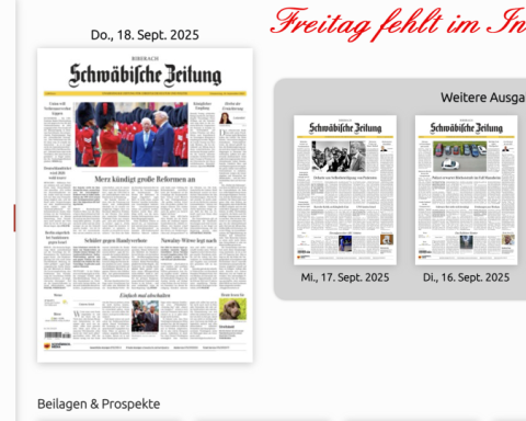 Das kennt man aus Agentenfilmen: Uhrenvergleich. Bei der Schwäbischen Zeitung von heute (Montag, 6. Oktober) sollten sie das auch durchführen. Unter der von uns intern genannten Rubrik „Festival der Vergangenen“ finden sie