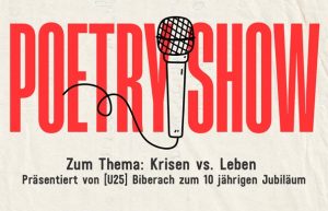Am Samstag, 20. September 2025, um 20:00 Uhr (Einlass ab 19:15 Uhr), lädt [U25] Biberach gemeinsam mit der Caritas Biberach und dem Abdera zu einer besonderen Poetry Show ein. Anlass ist der