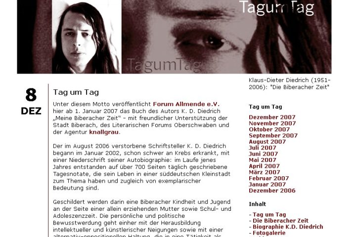 Gelegentlich vergisst man es und manche leute verschwinden einfach dann doch aus dem Bewusstsein, nach ihrem Tod. – Bis es durch Begegnungen mit anderen dazu kommt, dass man erinnert. Klaus-Dieter Diedrich war