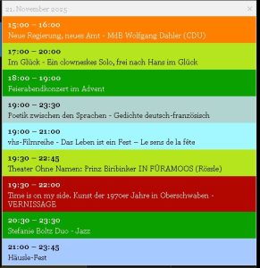 Nix is mit Black Friday. Der heutige Tag ist absolut überbordend was Veranstaltungen angeht. Es gibt Tage da findet in Biberach quasi nix statt. Und dann gibt es Tage wie heute, da