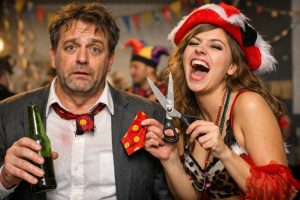 Helauuu und Alaaf, ihr Narren im Saal!Heut’ wird geschunkelt, gelacht – und vielleicht auch ein bisschen gezahlt! Ja, meine Damen und Herren, es ist wieder soweit:Weiberfastnacht – die fünfte Jahreszeit im Ausnahmezustand!
