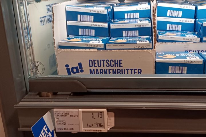 Neues von der Preisfront mit Egon Cappa: Wie nicht anders zu erwarten, nimmt die Inflation langsam Fahrt auf: Zum Wochenende ist der Preis für 250 g Butter, Hausmarke im Supermarkt meines Vertrauens,