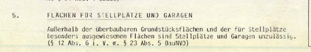 Man beachte, dass hier Stellplätze (Parkplätze) und Privatflächen deutlich ausgewiesen sind und es auch einen äußerst interessanten Hinweis in der zweiten Spalte ganz unten gibt. Der Einfachheit zitieren wir mal: