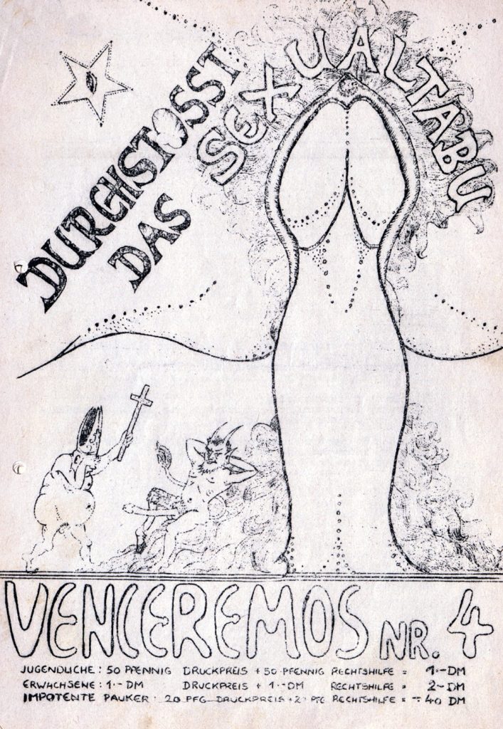 Sonderangebote gab es 1969 eben auch in der Vor-Viagra Zeit schon. Impotente Pauker bekamen die Schülerzeitung „Venceremos“ bereits für 40 Pfennig. Erwachsene zahlten 2 Mark und Jugendliche 1 Mark. Ekke Leupolz (Film im Weberberg AV Archiv und unten: „Trotzdem hoffe ich„) und eine Riege von Biberacher Künstlern (Damals auch Martin Heilig) forderten eine Enttabuisierung der Sexualität. Letztlich führte das zum Venceremos Prozess der Biberach bundesweit in die Schlagzeilen katapultierte. Martin Bangemann vertrat damals die Schüler. Der stellvertretende Schulleiter Buttschardt hatte mit dem WG geklagt. Schule und Lehrerschaft zogen die Kürzeren im „Pornografieprozess“.