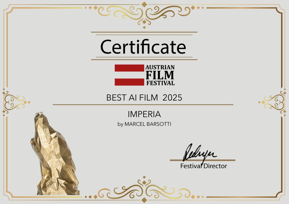 Die Deutschlandpremiere von IMPERIA findet in rund zwei Wochen bei den Biberacher Filmfestspielen statt. In Wien hat der KI Film von Marcel Barsotti bereits abgeräumt.