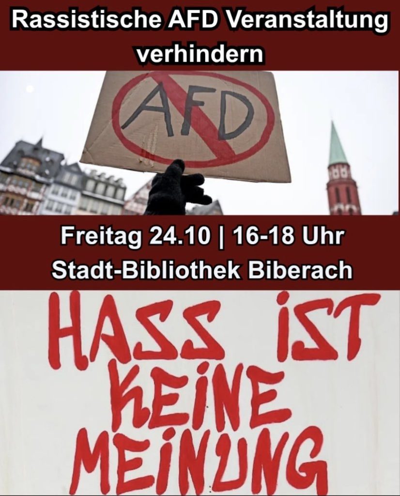 Heute Nachmittag (Freitag) um 16 Uhr soll auf dem Viehmarktplatz eine Demo oder besser Gegen-Infoveranstaltung der „Omas gegen Rechts“ stattfinden. Sowas hängt heute bei der AfD Veranstaltung aus: