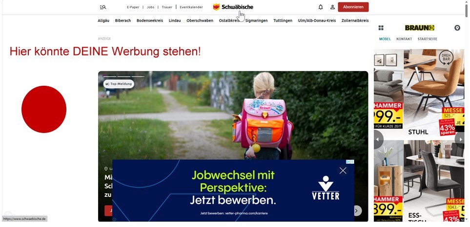 Aus sicherer Quelle wissen wir, dass man das Problem der Leserorientierungslosigkeit in der Abteilung digitaler Vollservice des schwäbischen Medienhauses in Ravensburg mittlerweile „voll erkannt hat“. Man arbeitet daran (also am Problem, das man „erkannt“ hat). Allein die Lösung scheint ausgesprochen schwierig: „Viele viele verschiedene Abteilungen sind da beteiligt!“ – So oder so ähnlich hört man das aus der Zentrale. Man kennt das ja. Gerade in letzter Zeit oder in den Jahren nach 2000 häufen sich doch massiv die Probleme. So ganz sicher auch hier! Amelie Pachulke – unsere rechte Abteilung für linkes Gedankengut – hat da eine fundierte Vermutung: Spielt hier vielleicht europäische Verwaltungswut mit hinein? Könnte es sein, dass zu wenig oder zu unauffällige Werbung nach Paragraph 2089, Abschnitt B unter „Besonderes“ gar nicht zulässig ist? Eine durchaus überdenkenswerte Möglichkeit. Es könnte aber auch sein, das das facility management für den Garagenverkehr Einspruch erhoben hat, schließlich will auch das Flugzeug der Geschäftsführung und der Chefredaktion in Messkirch (wirklich?) finanziert sein. Mann und vor allem Frau Pachulke wissen es nicht.