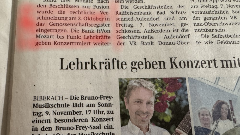 Hier war offenbar eine Profi – KI am Werk. Printausgabe der Lokalzeitung heute: