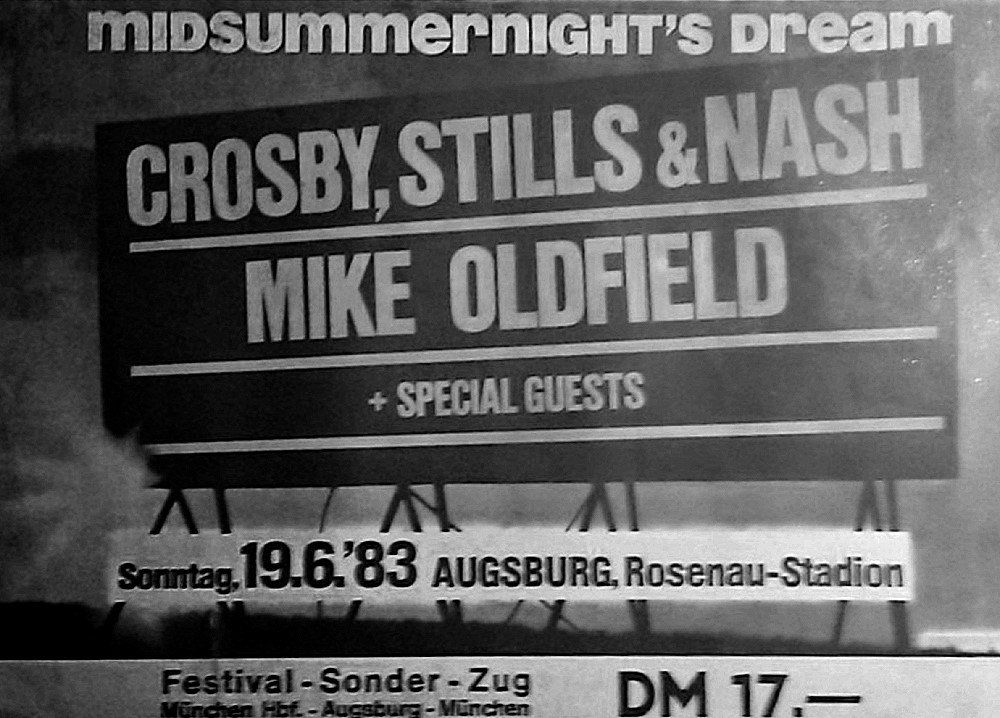 Jau, das waren noch Zeiten, als Gaspard für teure und erinnert 40 Mark Crosby, Stills and Nash (ohne Young), Mike Oldfield, Al Di Meola und Paco de Lucia (Ohne John McLaughlin – der war krank) plus weitere aber inzwischen Namenlose, wie Van Morrison und Robert Palmer am 19. Juni 1983 in Augsburg im Stadion sehen durfte.