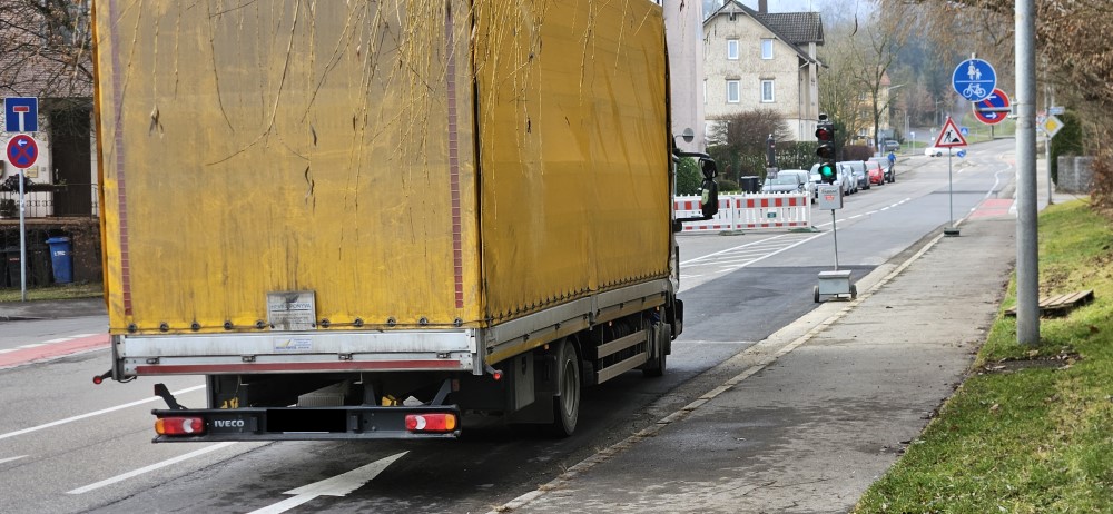 Die Länge der Baustelle ist 5 m auf der geraden und übersichtlichen Riedlinger Straße.