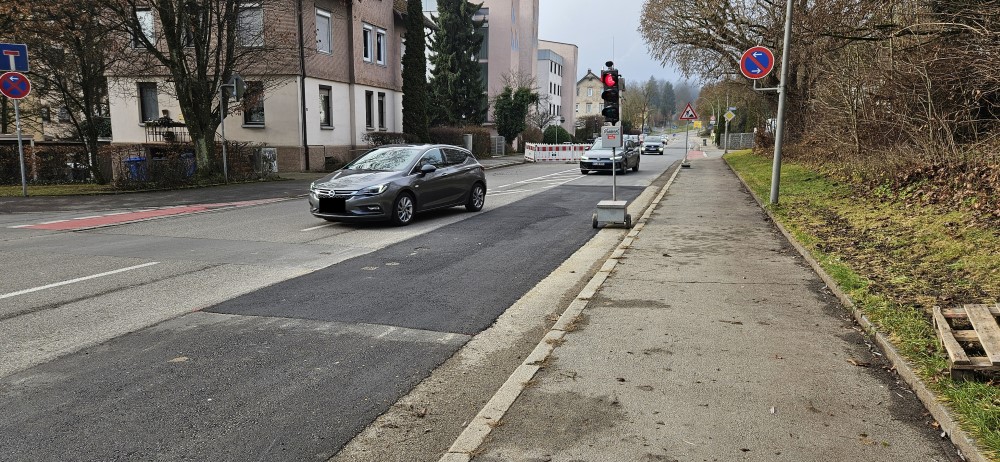Die Länge der Baustelle ist 5 m auf der geraden und übersichtlichen Riedlinger Straße.