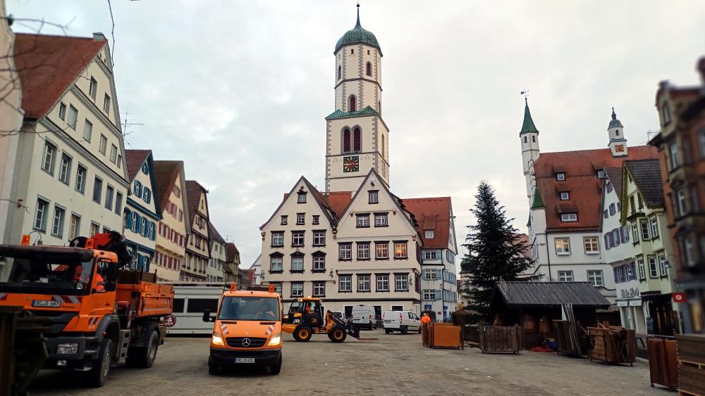 Die Standardmarktbeschicker sind froh: Endlich ist der Weihnachtsmarkt vorbei. Tatsächlich geht es dabei vor allem um die komplizierte Logistik hinter der Kirche und damit auf dem Kirchplatz. Während sich Otto Normal Weihnachtsmarktgänger am Pflaumenwein, Glühwein oder Glühwhiskey erfreut schlagen sich Mittwochs und Samstags die normalen Wochenbeschicker damit herum den Platz überhaupt mit ihren STänden zu bestücken, die Zufahrt und das Platzangebot erschweren die Aufstellung extrem. Dass der Markt heute immer noch hinter der Kirche stattfinden muss bedauern viele. Hättte der Abbau ein wenig flotter stattgefunden – für uns wärs toll gewesen – sagt der Marktstandmensch und winkt zum Abschied…