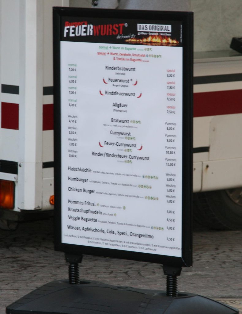 Allerdings erwartet Kley Kunden ein kleiner Preisschock: Pommes kosten hier jetzt plötzlich 4 Euro statt 3 Euro, Currywurst mit Wecken liegt bei 5.50 Euro. Preise wie beim Christkindlesmarkt. Dafür aber immerhin am Mittwoch bis zu 4 Menschen hinter der Theke… Alles Servicekräfte? Wohl weniger.