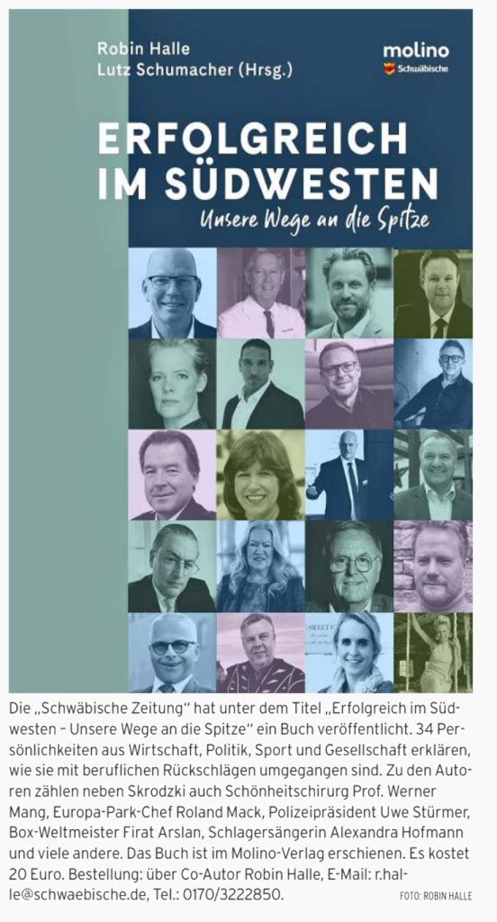 Er ist ein Meister des Wortes und hat das Schreiben von der Pieke auf bei der Sportredaktion der Bildzeitung gelernt, sein Sohn – so hat er vergangenes Jahr berichtet – will Deutschland mit der Waffe verteidigen. Robin Halle, Mitglied der Chefredaktion der Schwäbischen Zeitung ist erfolgreich im Südwesten, was liegt da näher, als genau darüber ein Buch zu schreiben. Wer es mag kann nun zuschlagen: