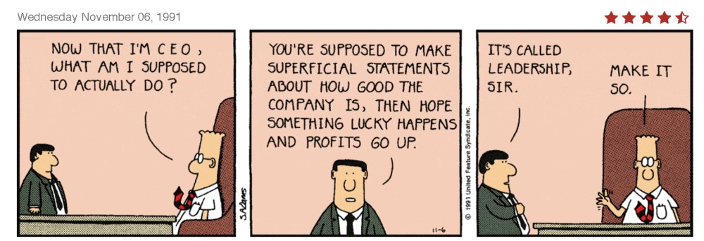 Scott Adams war ursprünglich Angestellter einer Telefongesellschaft und ein Pioneer des Internetcomics. Der Vater von der Comicfigur Dilbert war auch für Gaspard ab etwa 1999 Kult. Die kurzen Comics wurden ab Anfang der 2000er Jahre zusätzlich als Bücher veröffentlicht und befassten sich häufig mit Führung, Marketing, Vorgesetzten und Unternehmensstrategien. Scott Adams ist gestern nach schwerer Krebskrankheit verstorben. Wer nochmal in seinen Werken stöbern möchte, findet in der Wayback Zeitmaschine viele seiner Werke.